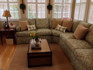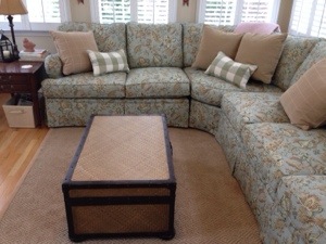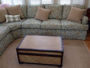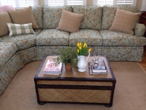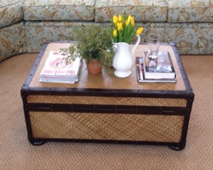 We had been borrowing our cute mahogany coffee table from our living room to use in the sunroom, since we spent so much time in there. But it meant that any time we used our living room, there was no place to stick a hot drink! Horrible! So I knew we needed a coffee table for the sunroom. I wanted a more casual table, and settled on a rattan chest from Wayfair (currently not available, but a similar look can be found here).
