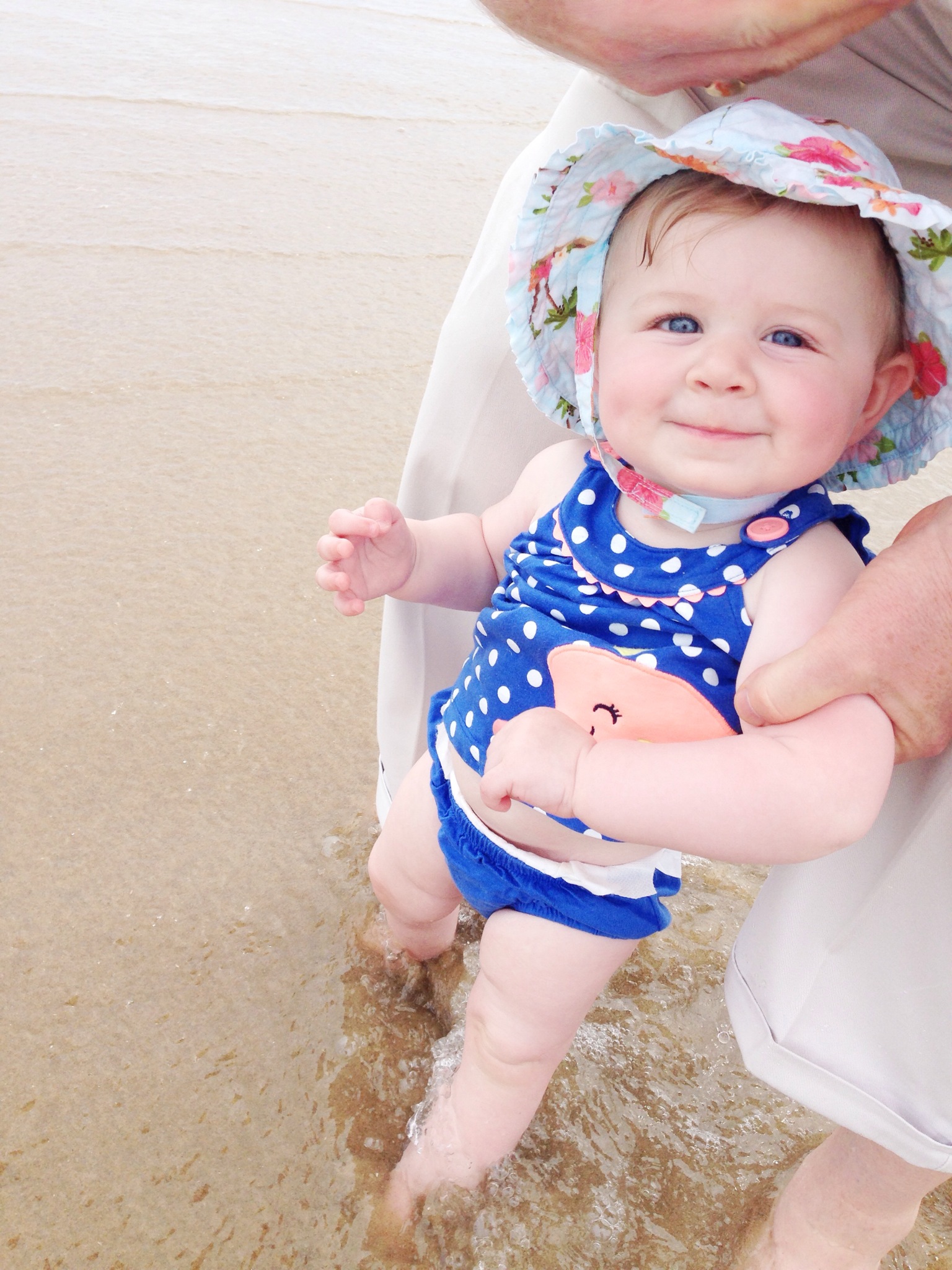 1. Our Labor Day weekend was such a fun time! We went up to Virginia Beach to visit my in laws, and then our little niece was dedicated. We also popped over to the beach on Monday. I tried sticking Elizabeth’s feet in the ocean again, since she seems to be enjoying water  more and more. She loved it! Next time, I’m going to have to put her in a bathing suit and a swim diaper.