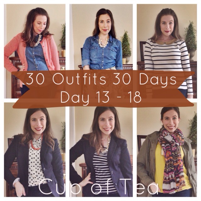 Favorite Outfit | I like each outfit for different reasons! But a new-to-me outfit that made me happy was Day 1. Loved the chambray with the pearls! Adding the orange cardigan was a nice addition.