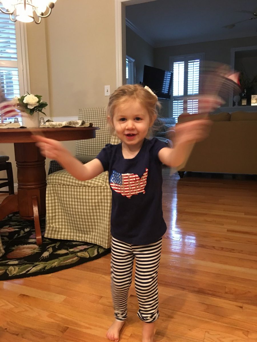 Elizabeth loved waving the tiny American flags and having a parade. See those blurry objects? Yep. Flags.