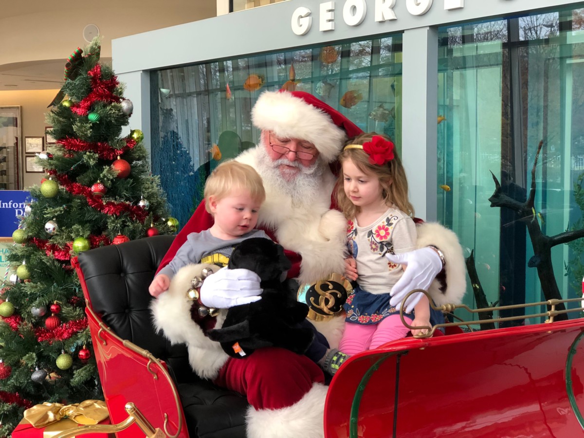 2. We got to see another Santa this week, accidentally! We went to Duke Children’s hospital for an appointment for Elizabeth, and when we walked into the lobby, there was Santa in a sleigh! Elizabeth was miffed at first that her favorite fish tank in the lobby was blocked by a crowd, but when she stopped and noticed that Santa was there, she gasped! We stopped to say hi on our way out. He was so sweet! Elizabeth said she needed a “new magnifying glass because William broke mine”. HAHA fact! So I ordered one and plan to wrap it and tuck it in her stocking, from Santa. Both kids left with really great toy dogs too. So generous!