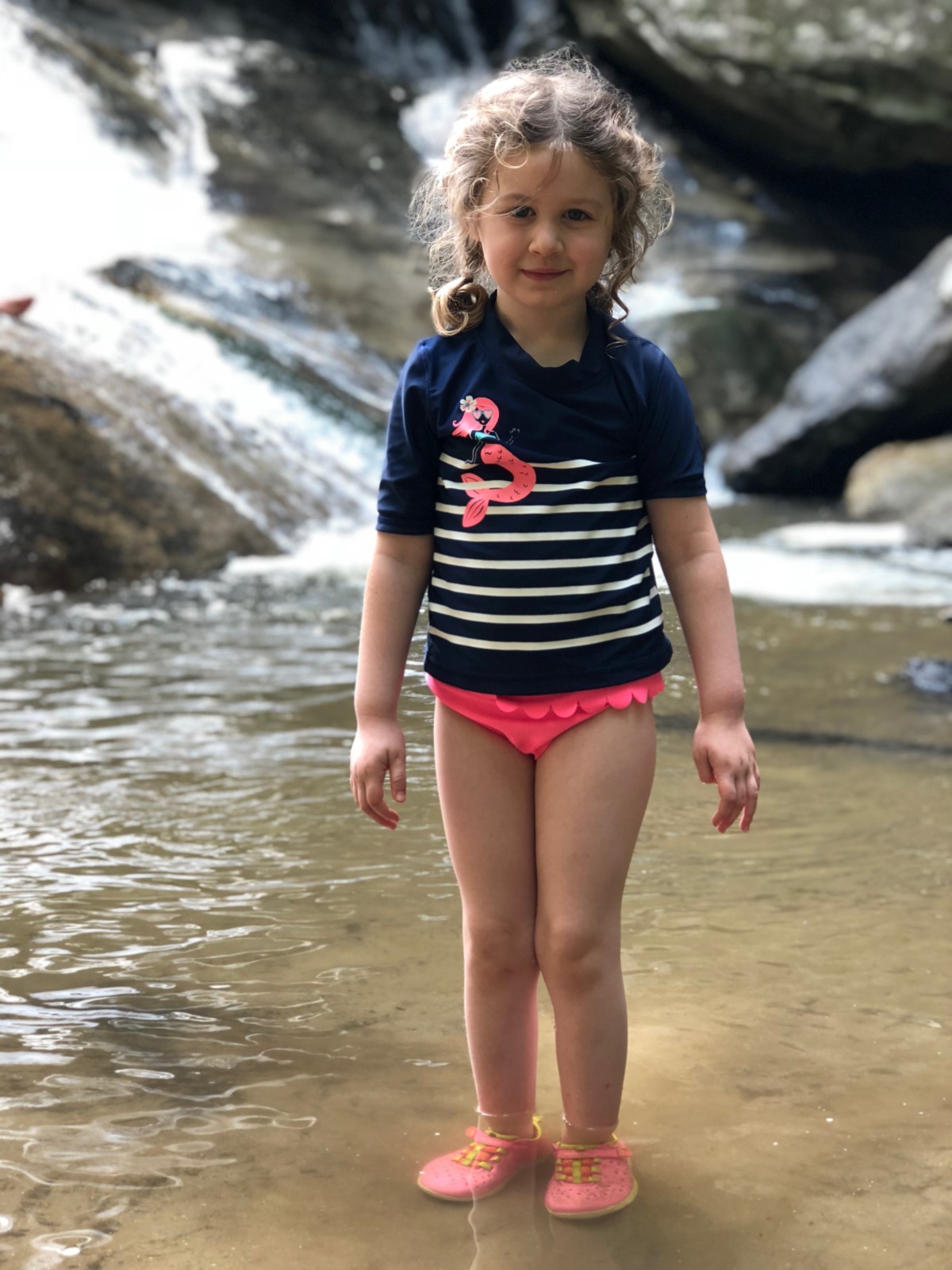 But the hike started off well! The river was low enough that we could walk out to the center area to toss in rocks.
